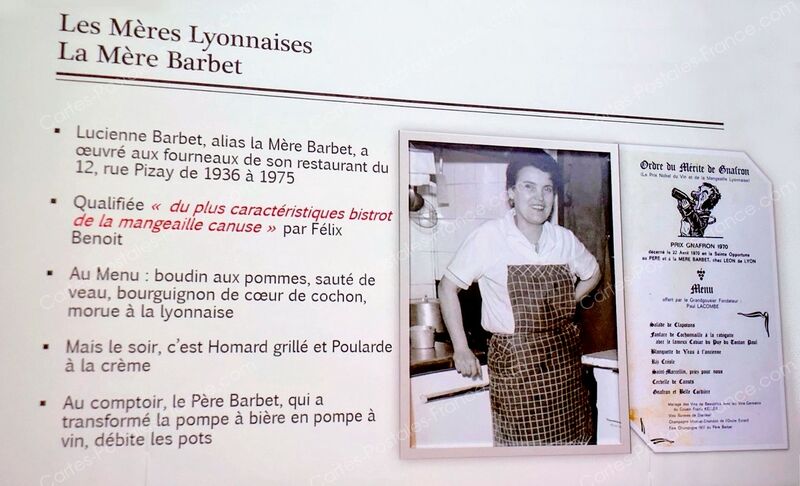 Une des fameuses Mères Lyonnaises, qui tenait le bouchon de « Chez Barbet », qualifié du « plus caractéristique bistrot de la mangeaille canuse » ;